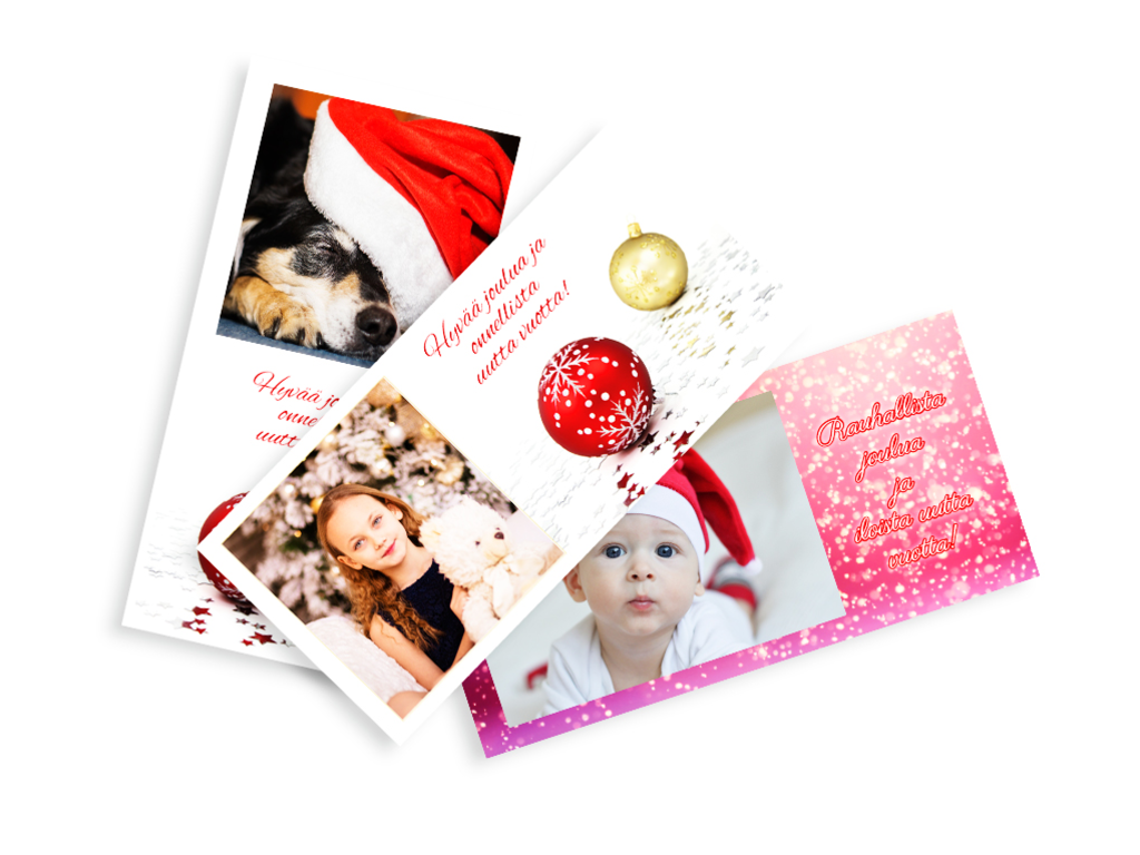 Joulukortti omasta kuvasta valokuvapaperille painettuna. Joulukortti on yksipuoleinen ja kooltaan 10x21 cm. Joulukortit painetaan laadukkaalle valokuvapaperille.